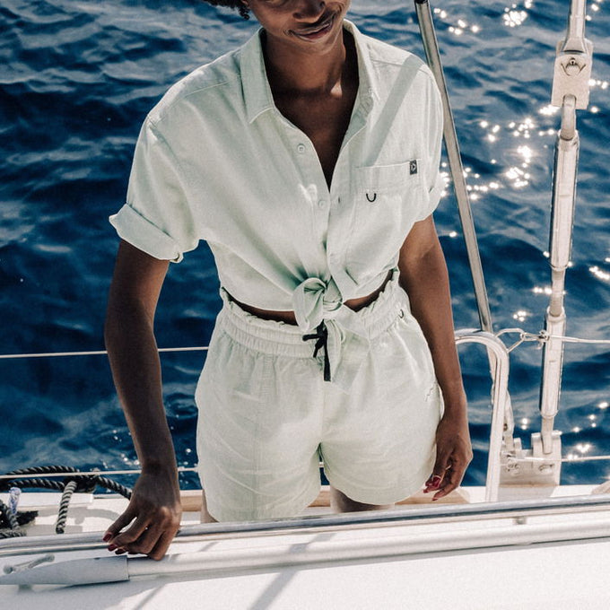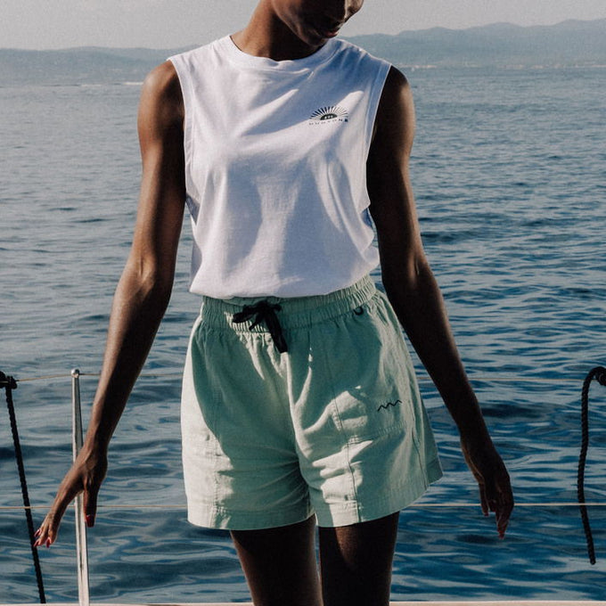 Nuestros True Beach Shorts para mujeres están hechos de tela de algodón orgánico arrugado y transpirable que tiene una textura única diseñada para combinar con tu estilo chic y garantizar comodidad. Perfectos para los días de verano, vienen con características especiales como un lazo elástico para tus gafas de sol. Disponibles en dos colores, combina tus True Beach Shorts con nuestro Tee SS True Women para completar tu look veraniego favorecedor.