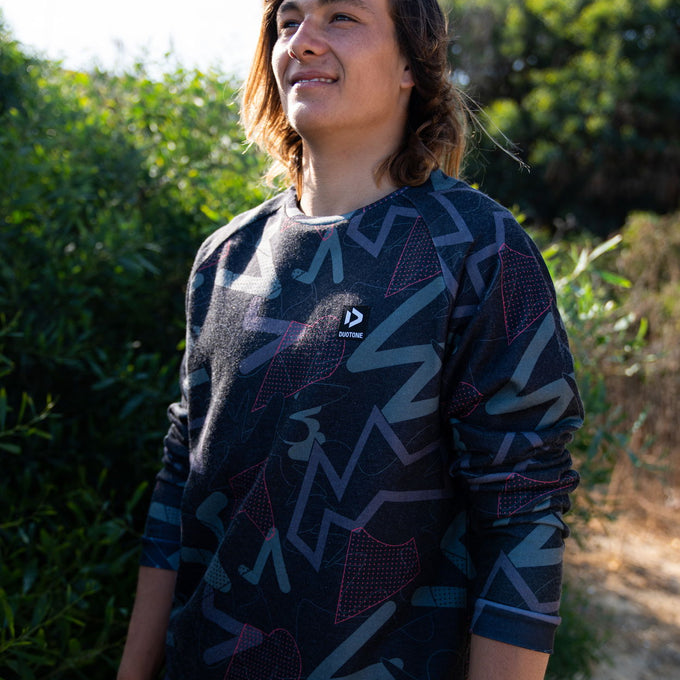 Destaca con nuestro jersey All Over de cuello redondo. El exclusivo estampado hace un guiño a los años 80 con un toque moderno y discreto. El corte relajado y el tejido de peso medio lo convierten en el jersey perfecto para llevar de día en la playa o por la noche en la ciudad.