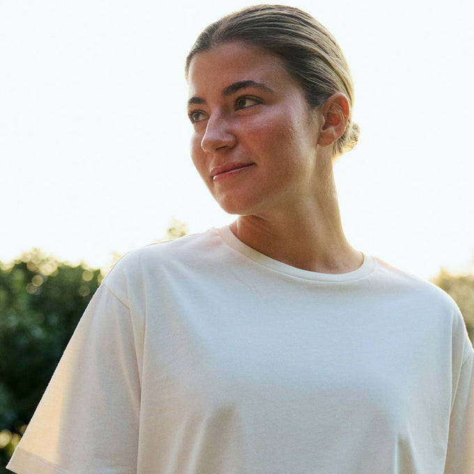 Look limpio. Declaración fuerte. Una camiseta que muestra su postura — de forma natural. Experimenta la moda sostenible sin compromisos con nuestra camiseta Concept Blue para mujer, fabricada con 100 % algodón orgánico sin teñir. Al no llevar tratamientos químicos ni tintes, protege el medio ambiente al evitar sustancias tóxicas. Muy suave al tacto, su tono natural es ideal para un look relajado y atemporal. Con un pequeño logo Concept Blue, un estampado trasero moderno y un estampado de logo discreto en el frente, esta camiseta combina actualizaciones modernas con el corte probado de la temporada pasada. Fabricado en Portugal. Completa tu look con nuestras piezas Concept Blue atemporales, de moda y sostenibles.