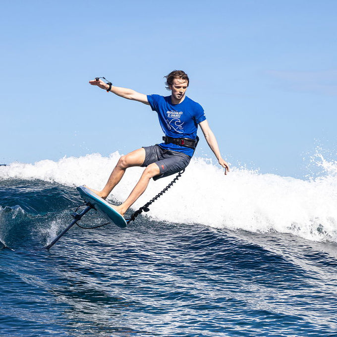 Para maximizar la duración de la batería con tu Foil Assist, recomendamos usar un ala frontal de al menos 900 cm² y una tabla con un volumen mínimo de 35 L.