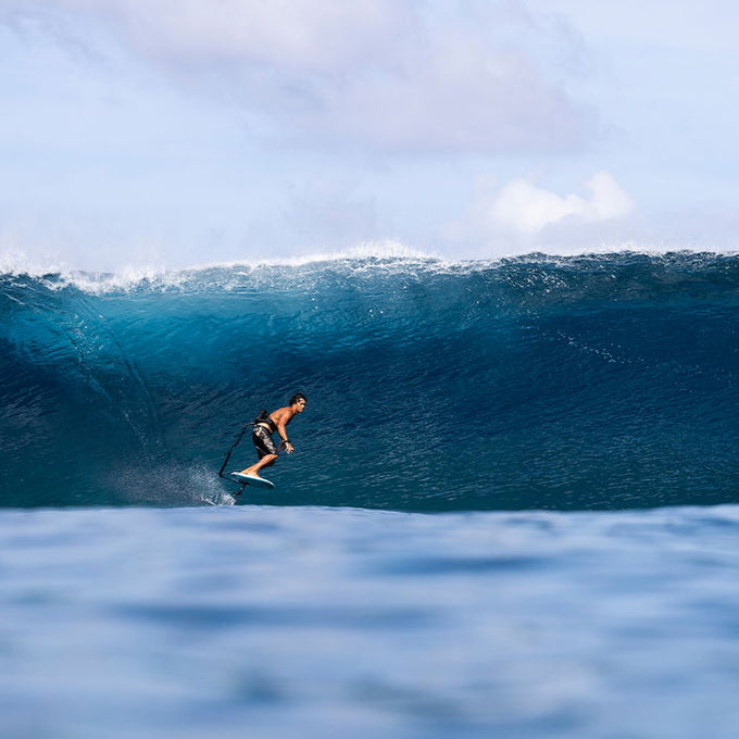 El Foil Assist Remote, un controlador impermeable estilo smartwatch con un anillo para el dedo, mantiene tus manos libres, facilitando levantarte en la tabla, remar, hacer duck dive, carvear o manejar un wing. Activa el motor con un doble clic en el botón + y controla la velocidad manteniendo presionado el botón + o -.