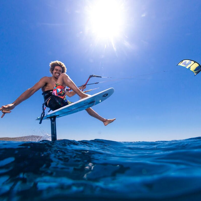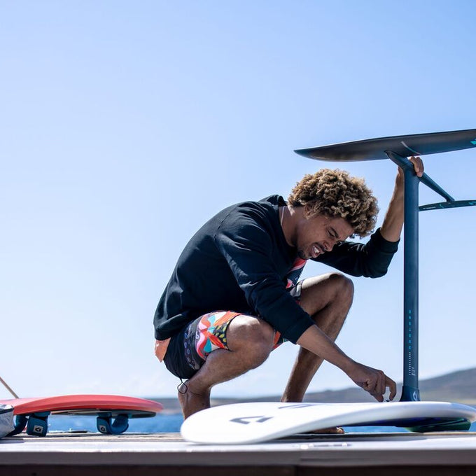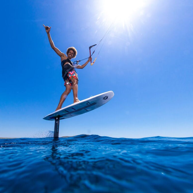 The unique four-point foil mount saves on weight and allows the board to flex in a uniform manner, and the foot strap inserts give you even more options for your style of riding.