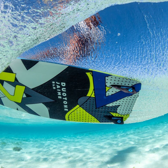 This year the fins on the Jamie have been angled to improve grip in the water for better upwind performance, improved pop and higher jumps.