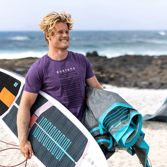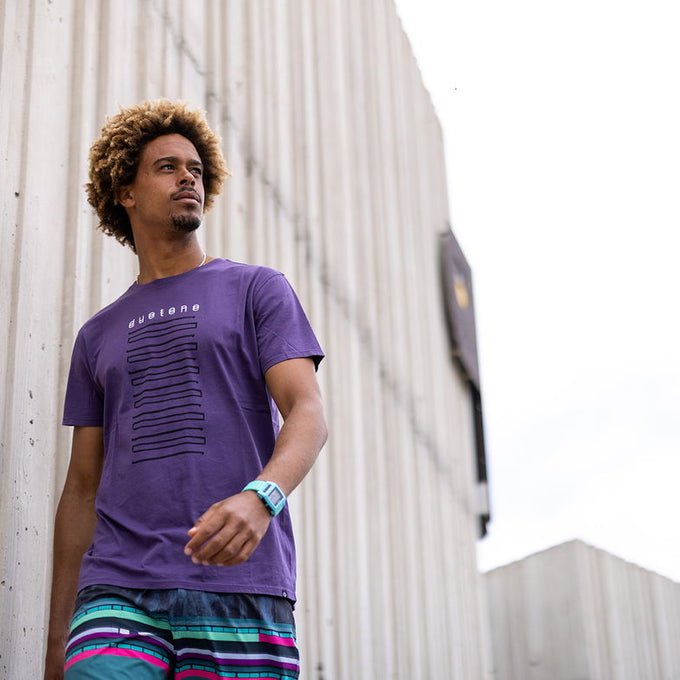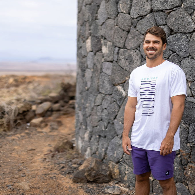 Camiseta con el logo de Duotone impreso en negro, ropa casual desenfadada con el clásico entallado del algodón. Disponible en blanco o morado.
