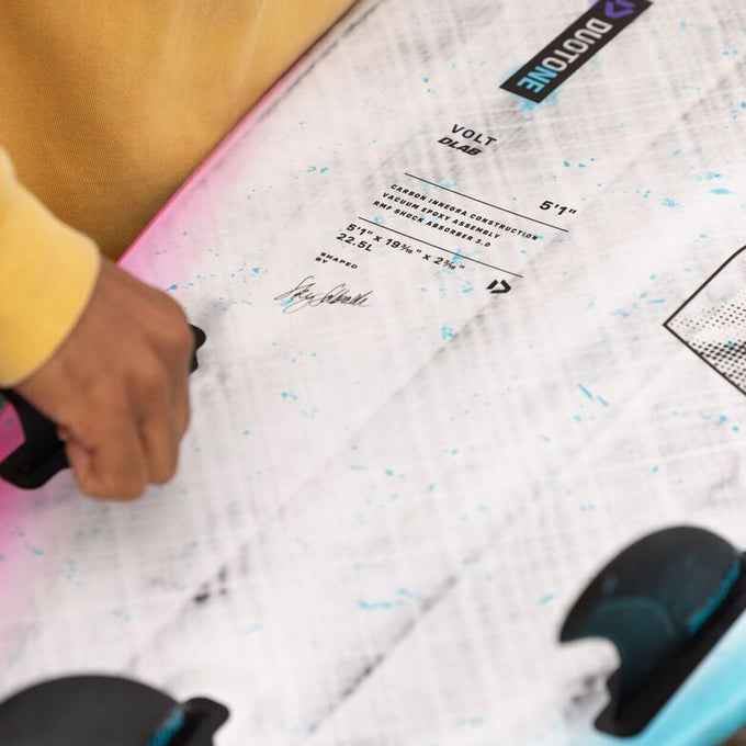 La Volt D/LAB presenta un diseño de alto rendimiento que parte de un rocker delantero bajo y una base inferior con doble cóncavo, lo que garantiza una excelente capacidad de generación de velocidad. Su nuevo contorno más corto y redondeado ofrece una gran reactividad y agilidad, lo que la convierte en la opción perfecta para olas pequeñas. Lo que realmente diferencia a la Volt es su anchura adicional bajo el pie delantero, que permite a los riders disfrutar al máximo en surf suave sin renunciar al rendimiento cuando las condiciones mejoran.