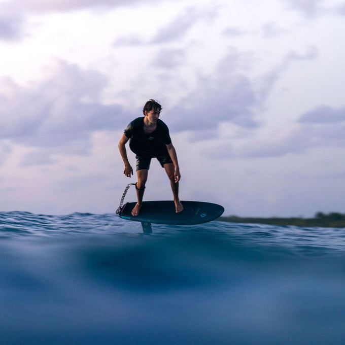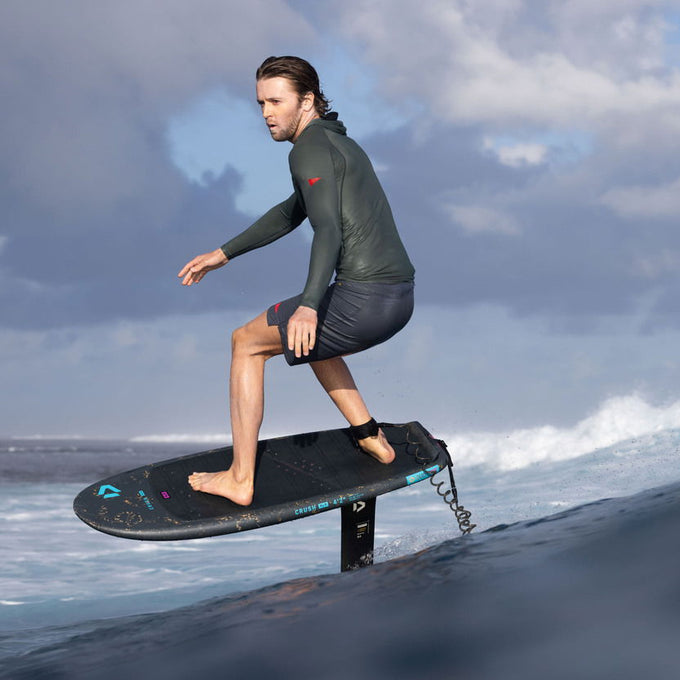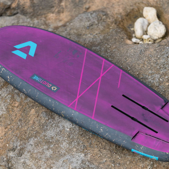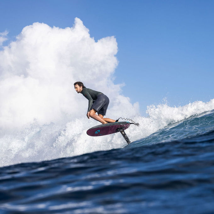 El rocker bajo facilita el bombeo y la conexión entre olas, mientras que la cubierta fina y limpia ofrece una conexión directa y reactiva con el foil bajo tus pies.