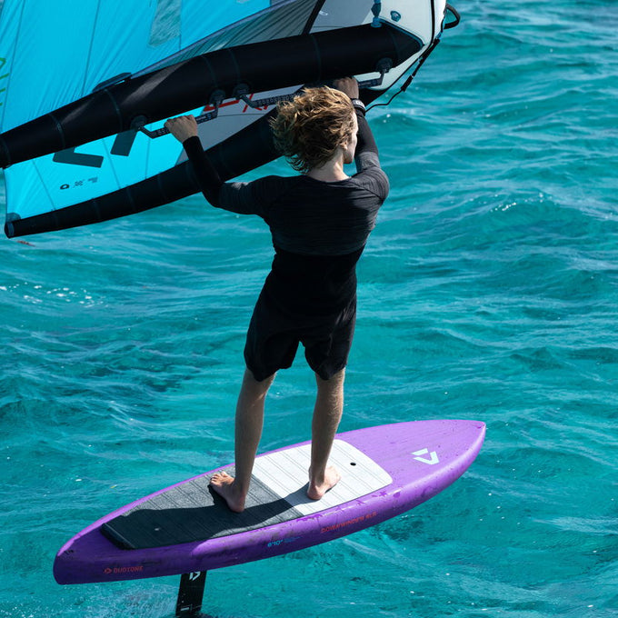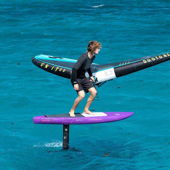 Nuestra nueva Downwinder SLS es puro rendimiento! Rediseñada por completo con un perfil estrecho y ligero, disponible en cuatro tamaños, es la tabla con la que comenzarás a volar fácilmente y ¡recorrerás kilómetros!Una de las primeras tablas en las que trabajaron los hermanos Spencer, Finn y Jeffrey, tras unirse al equipo Duotone fue el rediseño del shape de la Downwinder SLS. El resultado es una tabla rápida y estrecha, de deslizamiento eficiente, capaz de acelerar en la mínima ondulación con tan solo un par de bombeos. Para la colección 2024 ofrecemos cuatro tamaños, las pequeñas 6'4" x 19" y 6'10" x 20”, la mediana 7'2" x 21" y la más estable y fácil 7'8" x 22.5", en volúmenes de 85, 95, 115 y 135l.Con poco rocker, el outline alargado y los contornos inferiores limpios, las tablas alcanzan la velocidad de despegue increíblemente rápido. Una vez en movimiento, el pin tail (cola de pico) y los cantos afilados en los modelos más grandes, facilitan el bombeo para despegar. El contorno redondeado en la zona de la proa evita clavar en el agua causando cambios de rumbo, haciendo que el despegue y los aterrizajes sean permisivos y neutros, para que puedas centrarte en leer las ondulaciones del mar en lugar de estar pendiente de la tabla.Gracias a su increíble planeo y rápida aceleración, la Downwinder SLS es también una tabla ideal para Wing Foiling con poco viento.Construidas con ligero carbono, son tablas que han de tratarse con cariño, pero al ser su peso esencial para el rendimiento, con las Downwinders SLS 2024 hemos optado por una tecnología que no lo comprometa.