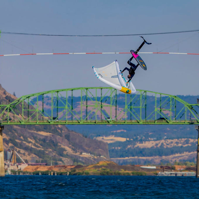 A wider nose and tail for more stability during landings makes it easier to stick big jumps and to balance the board on the water when not foiling.