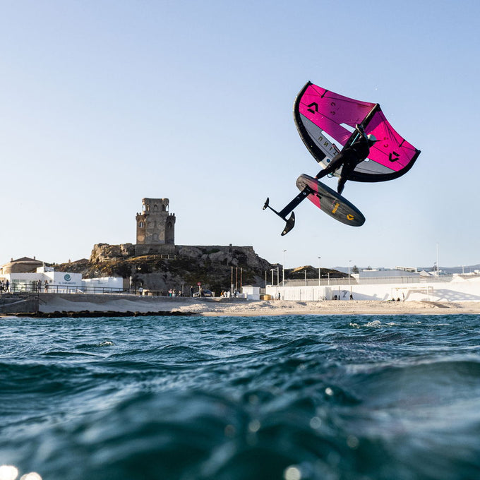 The double-concave to flat bottom shape allows for higher take-off speed and better release off the water allowing you to get up on your foil even earlier.