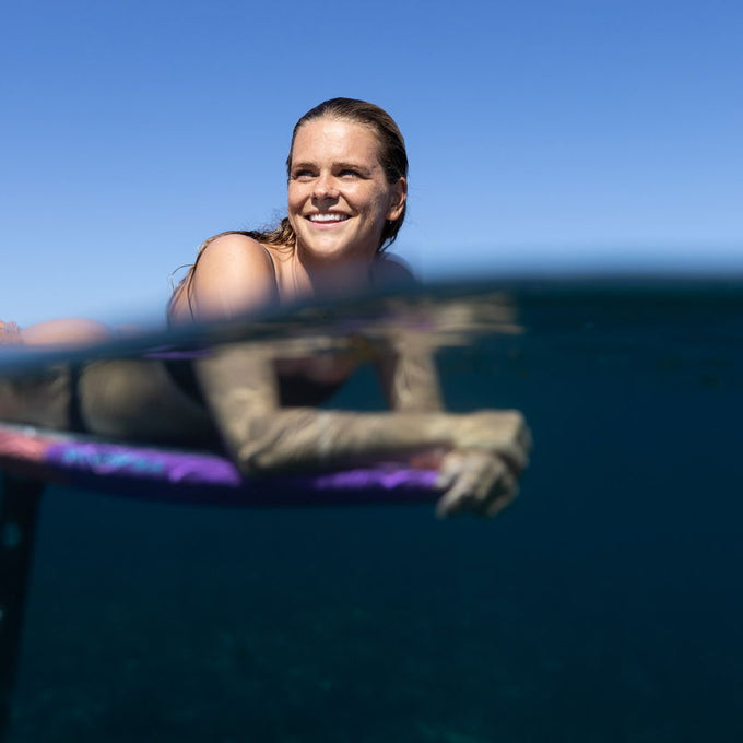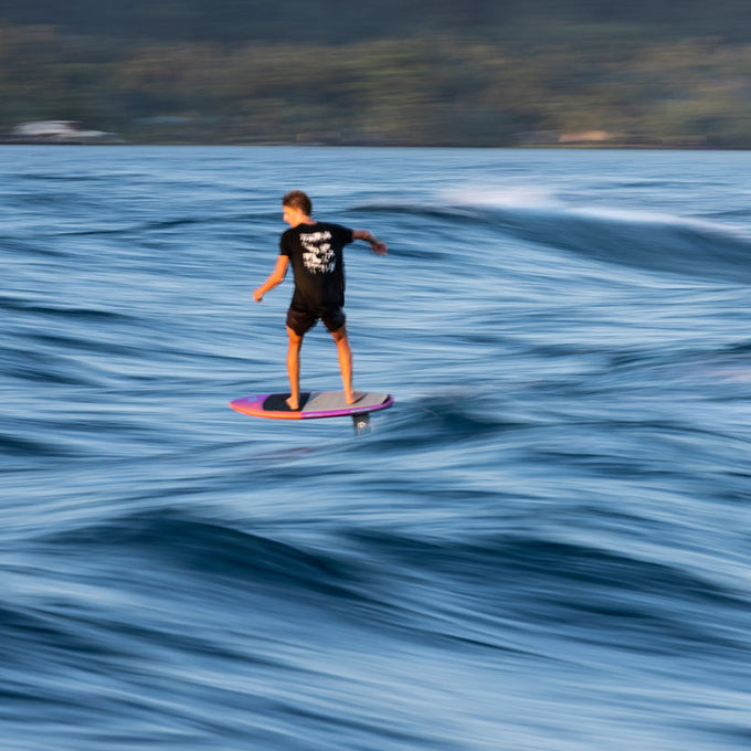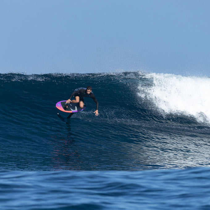 Concave rail bevels offer excellent hand grip for prone foiling with reduced rail catching in sharp turns