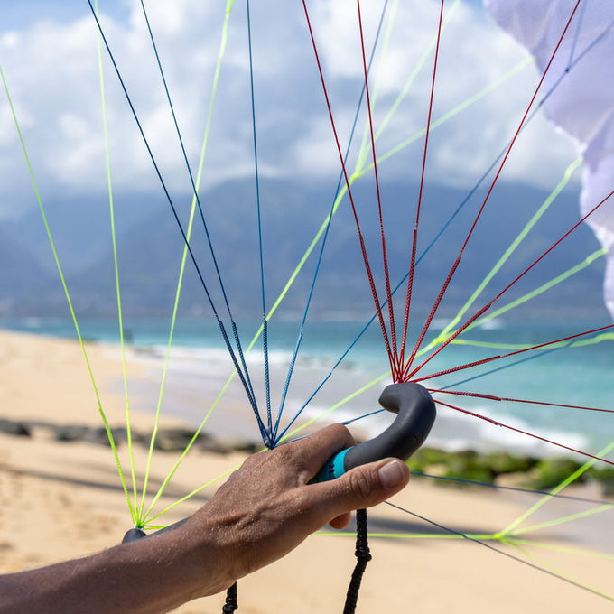 Segundo, mediante el nuevo mango ergonómico, que permite deslizar la mano delantera por debajo de las líneas “A” para mayor comodidad y distribución de potencia. Todas las conexiones de las líneas están completamente integradas en el mango, incluyendo la opción de cabo de arnés. El resultado es un Stash increíblemente cómodo, con un diseño limpio y funcional que evita enredos, facilita el guardarlo y permite un relanzamiento rápido y sin complicaciones.