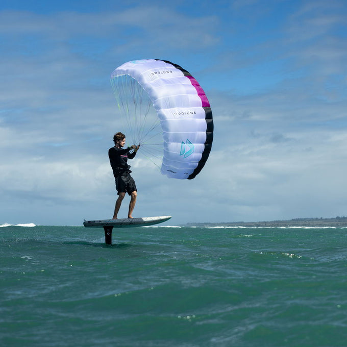 El equipo de diseño ha segmentado y estabilizado el borde de ataque al máximo, afinando el grosor del perfil y el ángulo de ataque para conseguir el equilibrio perfecto entre un mínimo arrastre y el máximo control en depower con un vuelo ultra estable. El resultado es un rango de viento más amplio y un control excepcional ante los cambios de intensidad o de ángulo en la navegación.
