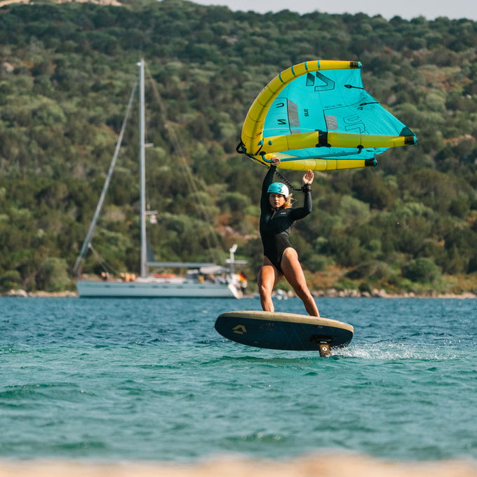 El contorno compacto en todas las medidas asegura una maniobrabilidad excepcional, mientras que el nuevo mango más ancho y rígido en el borde de ataque permite un control preciso al surfear olas o navegar downwind. Además, la mayor profundidad en el cuarto de envergadura estabiliza el luffing y proporciona una sustentación neutral o ligeramente positiva, dotando al wing de una sensación ligera y equilibrada en las maniobras y en olas.