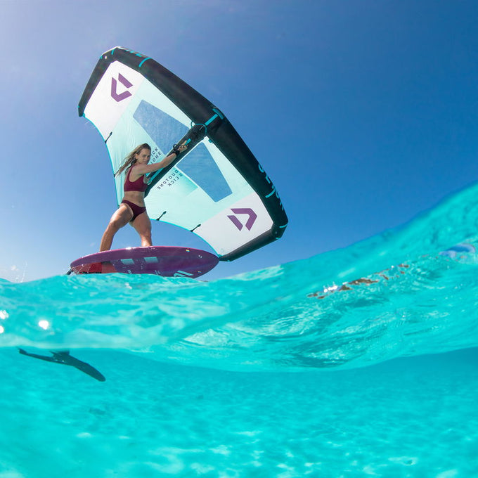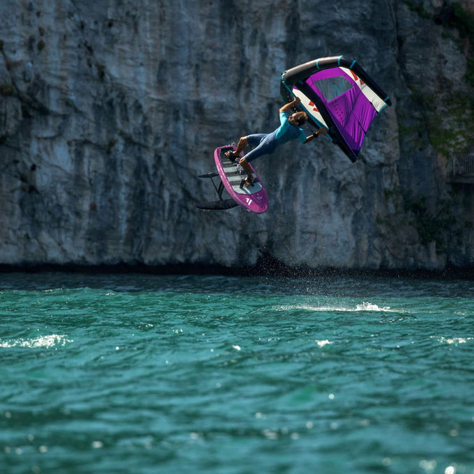 La gama Wing Allround, desde 4'8" hasta 5'8", se centra en el despegue más temprano posible con un tamaño de tabla mínimo. Nuestro shaper Sky Solbach combinó la línea de rocker de planeo temprano de nuestra anterior 5'4" con un borde de caja de liberación afilado y ligeras biseladuras en la sección de la nariz. El deslizamiento adicional permitió retraer ligeramente el contorno de la cola y la nariz para reducir el enganche en las curvas y en la ola. El enfoque limpio con mucho volumen bajo tus pies permite un aterrizaje ininterrumpido, lo que ayuda tanto a aprendices como a freestylers hardcore, ¡simplemente nunca te quedas atascado!