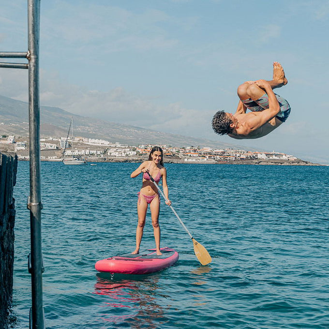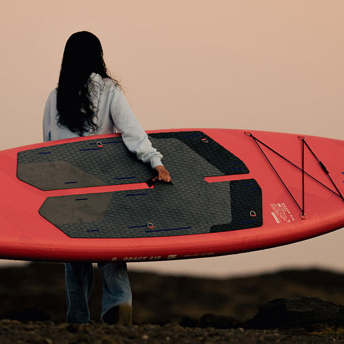 Strong | Light | Superior - Nuestro material woven drop-stitch, líder en la industria, hace que nuestras tablas sean un 20% más ligeras y un 40% más compactas al enrollarlas. Los rail-bands termosellados a máquina garantizan la máxima durabilidad y longevidad.