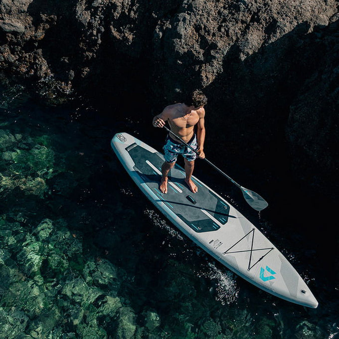 Strong | Light | Superior - Nuestro material woven drop-stitch, líder en la industria, hace que nuestras tablas sean un 20% más ligeras y un 40% más compactas al enrollarlas. Los rail-bands termosellados a máquina garantizan la máxima durabilidad y longevidad.
