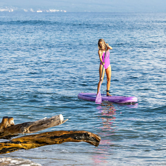 In the past, all paddle flex patterns were made up of two parts: the blade, and the shaft. An oversized stiff joint disrupted these two flexible parts, where paddle and shaft were connected. The Fanatic Union System paddle has revolutionised the unified flex pattern. It now runs seamlessly from the tip of the blade all the way to the shaft. By moving the connection joint further up the shaft, it tapers perfectly into a RDM joint, resulting in constant flex for an unmatched spring and response with every stroke. From the moment the blade enters the water your energy is converted into forward drive. The Union paddle is available in four construction styles for a straightforward selection of paddles to match your performance and budget.