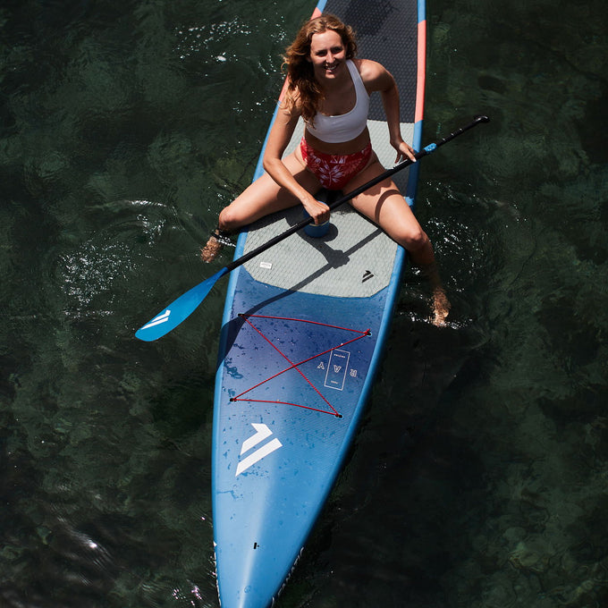 Benefiting from the development of our raceboards, the Ray allows you to cover maximum distance with minimum effort, thanks to a highly efficient rocker line based on the Strike. The slightly recessed deck, wide tail and high apex rails maintain the super stable ride, allowing you to track easily in both flat water and chop. One shape (12'6" × 28.5") is available in two construction options: Our new optical highlight, the precious Ray Bamboo Edition and our value minded Ray Pure.