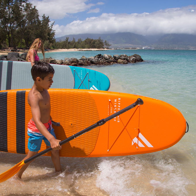 The Ripper Air is our all-round inflatable kids Windsurf / SUP board that is ideal for them to transport, and set up for themselves. It opens up a whole world of watersports adventures and fun possibilities.