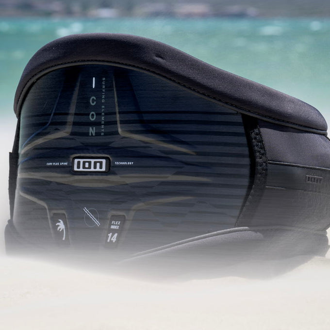 ION's 3D Fit technology provides the perfect fit for each individual's body size and shape. The harness outline derives from body height and waist circumference. Therefore the Icon Curv is available in regular and tall sizes. The exchangeable Ergo_Pad on the inside offers optimal lumbar support in two profiles (each harness comes with two options - medium and high support - choose what suits you best). The Icon Curv is medium rigid (flex index 14) and offers a good balance between direct feeling, flexibility, and support. An ultra-lightweight Curv construction distributes forces evenly throughout the harness. At the same time, it's flexible enough to allow for optimum freedom of movement. Non-water-absorbent Hyper_Foam contributes to the overall ergonomic fit and lightweight while the Neoprene_Belt provides flexibility in the front. ION's sleek Spectre Bar (including windsurf hook) completes the Icon Curv. Its Curv_Flaps create a seamless and optimal force distribution throughout the harness.