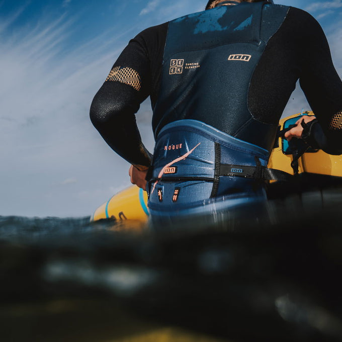 The Rogue Wing Foil harness is your game-changer.The Rogue is ION's first harness, exclusively targeted toward wing foiling. The minimalist and ultra-lightweight Rogue follows what other wind water sports already established. Wearing a harness improves force distribution and takes pressure from the arms resulting in reduced fatigue and lower physical effort. The fully Curv construction offers flexibility and additional back support. The Rogue features a movable hook which makes paddling out easy. You only feel it when you use it.