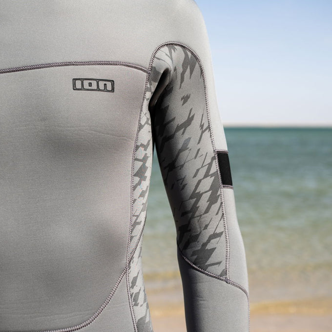 Improved version of highly elastic neoprene tape securing every inch of lower body seams and highly stressed cuff area.