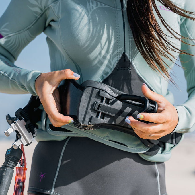 La tecnología 3D Fit de ION proporciona el ajuste perfecto para el tamaño y la forma del cuerpo de cada persona. El ajuste individual depende de la longitud de la espalda y la circunferencia de la cintura. Por lo tanto, el Sol Curv está disponible en tallas regular y tallas altas. La almohadilla intercambiable Ergo_Pad en el interior ofrece soporte lumbar óptimo en dos perfiles (cada arnés incluye dos opciones: soporte medio y alto, elige el que mejor se adapte a ti). El Sol Curv es de rigidez media (índice de flexión 11) y ofrece un buen equilibrio entre sensación directa, flexibilidad y soporte. Su construcción ultraligera en Curv distribuye las fuerzas de manera uniforme a lo largo del arnés. Al mismo tiempo, es lo suficientemente flexible como para permitir una óptima libertad de movimiento. El Hyper_Foam, que no absorbe agua, contribuye al ajuste ergonómico general y al bajo peso, mientras que el Neoprene_Belt proporciona flexibilidad en la parte frontal. La barra Spectre de ION (con gancho para kite incluido) completa el Sol Curv. Sus Curv_Flaps crean una distribución de fuerzas óptima y sin costuras a lo largo del arnés. Incluye el multitool Kite_Knife 2.0 integrado. El Sol Curv es la elección de atletas como Mikaili Sol y Rita Arnaus.