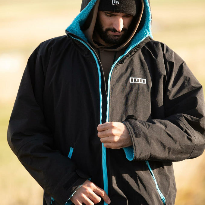 The Storm Coat is your mobile changing robe and comfortable coat in one. It shelters you against rain and storm while providing good breathability. Taped seams and a durable zipper make the coat sturdy enough for rough conditions. The easy-grip zipper makes getting in and out easy, even with cold hands. On the inside, a fluffy teddy fleece increases comfort to the max and cares for extra warmth in between sessions.