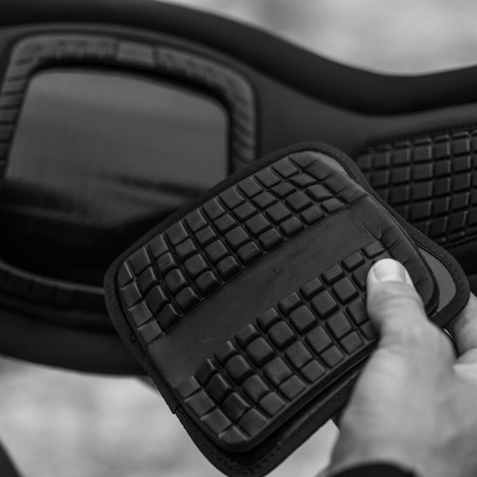 The exchangeable Ergo_Pad on the harness inside offers optimal lumbar support in two profiles (medium and high support). For individual back support & injury prevention.